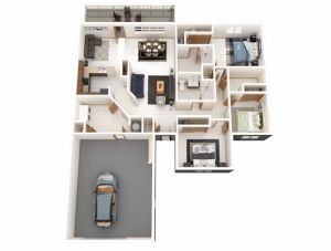 This central air conditioned 1 story, 3 bedroom home features an open concept plan. The garage contains a large storage area and provides access to the house through the laundry room (with washer and dryer). The kitchen is well laid out and provides a view of the family room and lanai areas. The master suite includes a separate full bathroom and large closet area. The second full bath is located in the hall adjacent to the other two bedrooms and an additional storage closet can also be found in this hall.